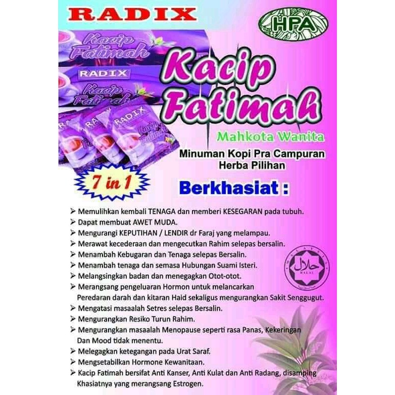 Melalui Institut Pembangunan Bioproduk IBD UTM berjaya membuktikan herba semulajadi kacip fatimah memberi banyak manfaat kepada wanita. Kacip Fatimah mengandungi elemen antioksidan dan phytoestrogen yang mana kedua-dua elemen ini mampu memberi manfaat bukan sahaja kepada wanita tetapi juga lelaki. Read customer reviews find best sellers.